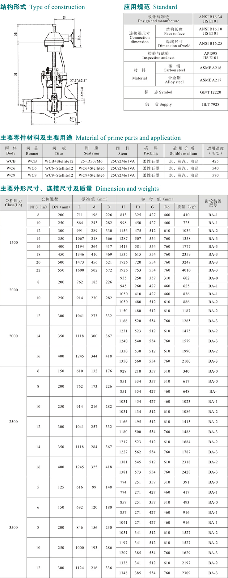 名稱:磅級高溫高壓電站用齒輪傳動對焊閘閥