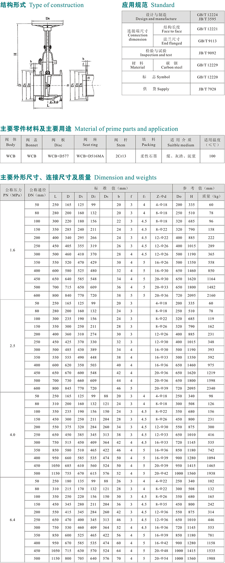 中、高壓法蘭楔式閘閥